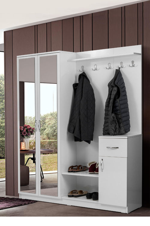 POLO 2 (iki) Kapılı Beyaz Aynalı Elbise Askılığı Kapaklı Vestiyer,Portmanto,Ayakkabılık