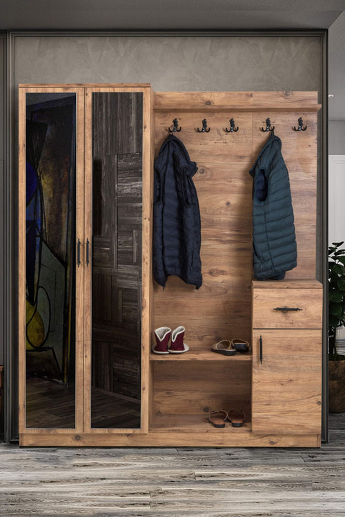 Lotus 2 (İKİ) Kapılı Aynalı Kapaklı Elbise Askılığı, Vestiyer, Portmanto, Ayakkabılık